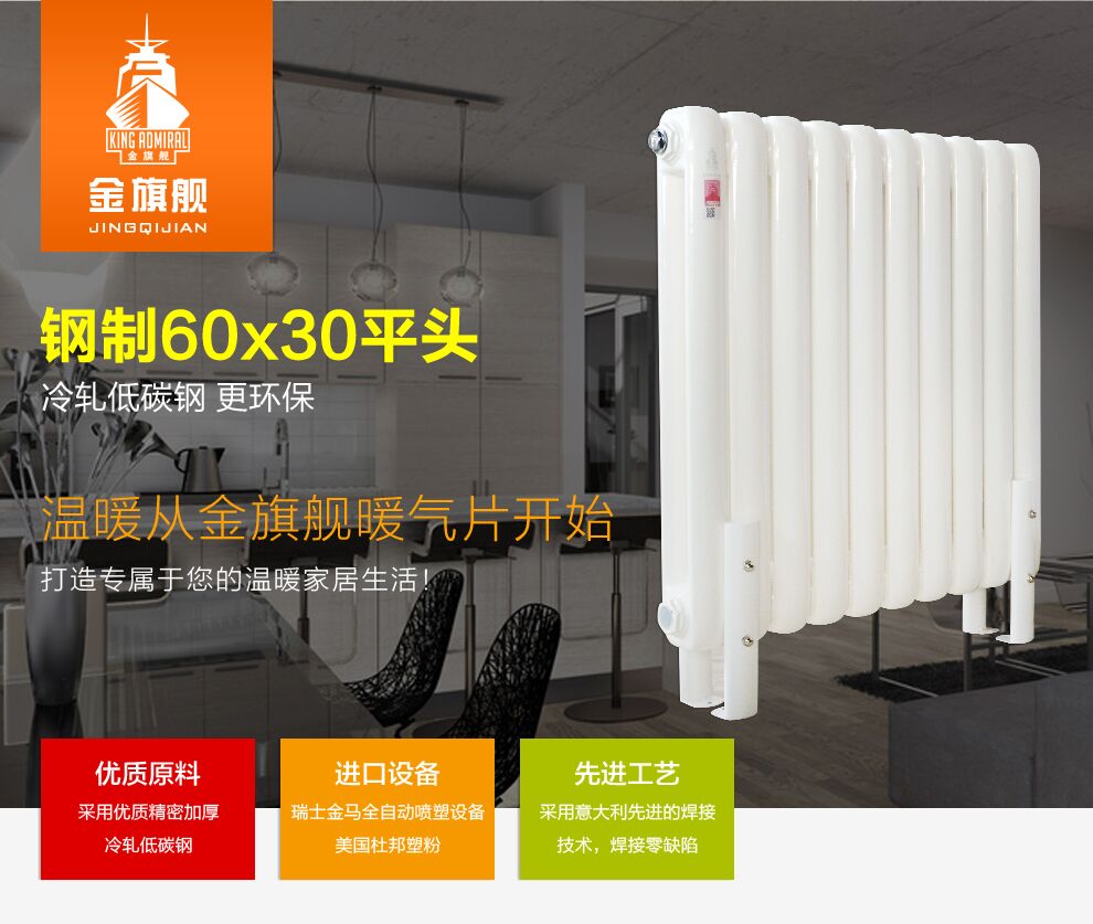歐洲標(biāo)準(zhǔn)工藝流程:18道工藝成就細(xì)節(jié)的完美。奧運(yùn)工程采用:金旗艦攜手奧運(yùn),全力打造精品采暖工程幾百萬家庭見證。綠色、環(huán)保、健康:金旗艦采暖專家,給您和家人360度溫暖呵護(hù)。